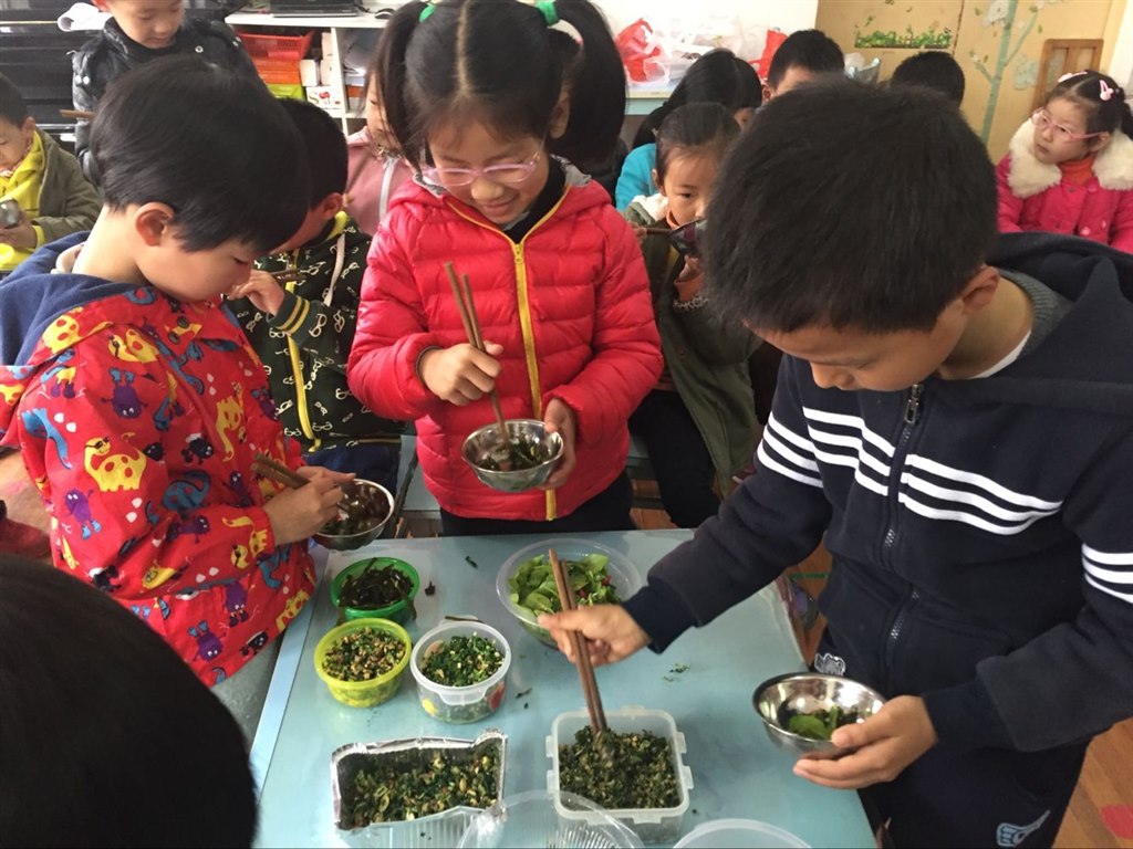 本次活动得到了家长们的热烈支持。家长利用周末时间带孩子一起挖野菜、摘野菜。家长们指导孩子制作了各种形式的野菜熟食:马兰拌豆干、野菜饼、荠菜饺子、清炒金花菜、炒春笋、香椿炒鸡蛋等,美味又好看。活动中,孩子以自助餐的形式进入了品尝环节,依次排队按需拿取自己喜爱的食物。他们一边品尝别人的食物,一边介绍自己带来的野菜。