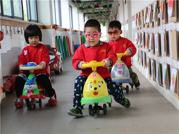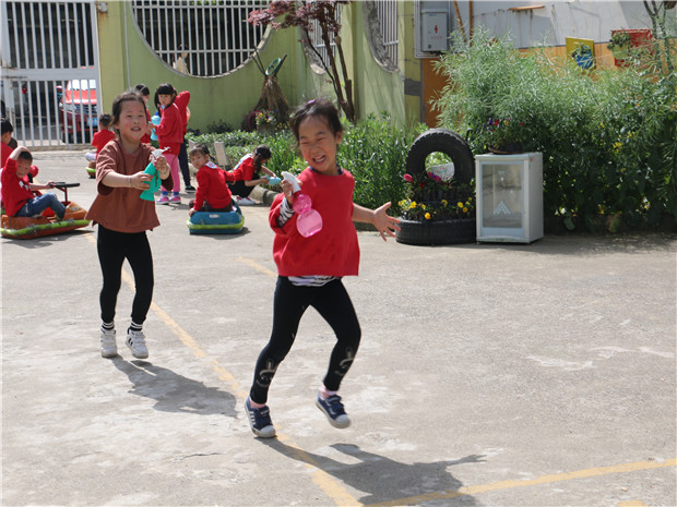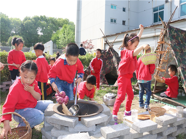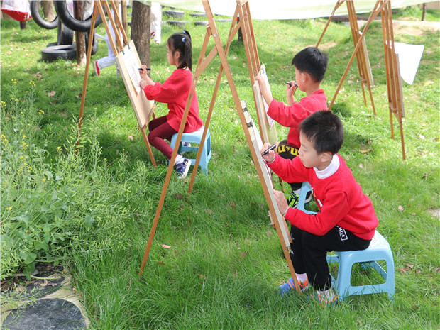 雕庄幼儿园总园将幼儿园每一处自然环境巧妙的融合进运动、游戏中,让教育回归自然。在这里,有美丽的小山坡、蜿蜒的小路,有茂密的树林也有丰盛的种植园,孩子们在游戏中适应了环境的变化;在这里,有多变的运动区也有快乐的足球场,更有惊险刺激的探趣园,孩子们畅玩中促进了运动能力的发展。在这里,有静态的水塘,也有水淳淳流动的动态水管区,孩子们在观察中探索了科学的奥秘;在这里,有玩砂石的走道,也有信手拈来的涂鸦坊,孩子们在动手中获得了美的提升;在这里,有树林间的装扮游戏,也有帐篷里的农家乐生活体验,孩子在玩乐中增强了交往。孩子们互动在一个个生态、野趣、挑战、具有情景性的自然环境里,孩子们在天地之间快乐的游戏,在游戏中获得锻炼和成长,更在成长中体验一份童年的真善美。