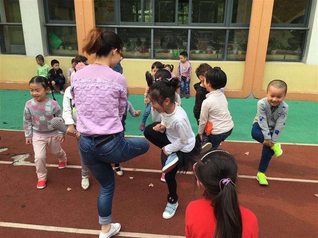 教师根据幼儿园能力差异,让幼儿投入到游戏的快乐当中。翻绳子、斗鸡、跳绳、“翻绳”、“炒豆豆” “我们邀请一个人”、“老狼老狼几点了”、“荷花荷花几月开”、“ 送鸭子”、“踩高跷”、“编花篮”等民间游戏,不仅锻炼孩子们的身体协调能力,还可以培养他们之间的友情,增强他们的集体荣誉感。