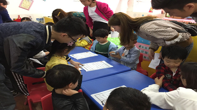 活动中,教师利用孩子们最喜欢的猜谜游戏进行象棋棋子的认知,随后让幼儿请象棋宝宝来做客,用扔骰子的方式来进行象棋走步。利用多种有趣的互动游戏,把孩子们带进了学习探索的活动氛围中,给家长们留下了深刻的印象。