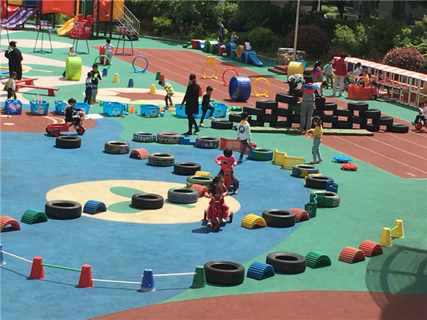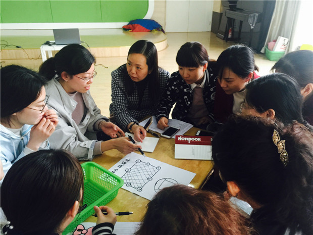活动中,从老师们日常工作谈起,结合幼儿一日活动交流如何组织户外活动的。然后通过视频分享,感受国内外户外活动的现状,帮助老师进一步在户外活动的时间形式上进行区分。最后,各年级组根据孩子的年龄特点和兴趣,以轮胎为主体,借助其它辅助材料,共同商讨设计1—2个户外活动,以图、文等形式呈现交流。老师们通过自身感受、设计商讨、交流经验,共享幼儿户外活动的组织策略 ,为户外游戏的开展抛砖引玉。