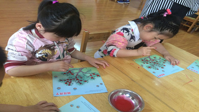 彩虹幼:桃花朵朵迎春风——记小五班“有趣的手指点画”活动