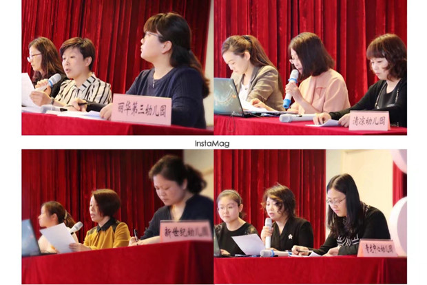 根据省、市课程游戏化项目建设要求,来自北环、朝阳、新世纪、清凉、吉的堡、艺术、青龙、丽华三幼的八名申报园园长带着各自的项目团队,首先对近年来园所的发展概况进行了简单的介绍,接着对本园主动发展项目的制定论证过程以及目前园所对项目的达成度进行了自我分析和评定的阐述。专家们对项目报告和园所的各方面发展进行了现场提问,问题犀利睿智,各园所团队在短暂的商议后立刻作出应答。首先由北环幼儿园项目团队就“幼儿OM戏剧游戏如何实现全员参与及本园的优势体现”向专家组进行了详细阐述,新世纪幼儿园对专家组提出的质疑进行了现场答辩。接着,丽华、清凉、艺术、吉的堡幼儿园就项目内容的关键词和专家们展开了交流互动,答辩组配合默契,专家提出的问题作出了回应。朝阳幼儿园的“玩美乐活”和青龙幼儿园的“基于幼儿的互动性游戏环境”项目目标明确,思路清晰,实施策略针对性、时效性强,对专家们的提问回答得层次分明、考虑全面、站位高远,赢得专家和同行们的认可。