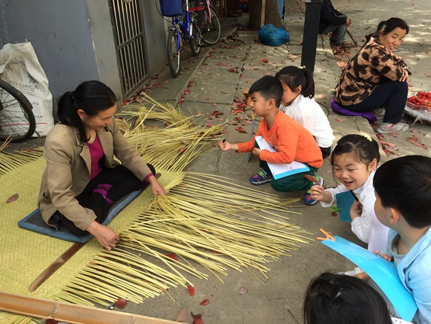 这次采访活动,小朋友遇到了一些不寻常的工种。例如红东社区有个加工白铁的师傅,他的手艺快要失传了,他不仅会加工烟囱,还会修各种各样的锅子,而且还会修补“汤婆子”,小朋友通过这次采访,知道了汤婆子是啥玩意,是什么材质的,而且对这个修“汤婆子”师傅更加尊敬了,因为他的手艺曾经在《常州晚报》上报道过,十里八乡的乡亲都来找他修理。小朋友还采访了编制竹席的奶奶,这位奶奶的手艺也是一门绝活,难得一见。小朋友纷纷走过去问道:竹席是怎样做出来的?通过采访和观看,知道了竹席大概是怎样编织出来的,知道竹席是竹制品,编制竹席是一项复杂的工艺流程。小朋友还参观了麻糕店、肉铺、干洗店、毛衣编织店等,仔细观看了人们的工作。