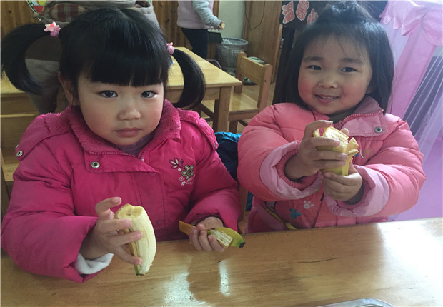 近日,小班老师巧妙地结合了每日的膳食类型,给孩子们提供了动手的能力。虾是孩子们喜爱吃的高蛋白食物,可是怎么剥呢?老师先给孩子们讲解剥虾的要领,再手把手给能力较弱的孩子做示范,很快,大部分的孩子们都尝试自己独立剥虾吃了,他们剥得熟练干净,吃得津津有味。下午点心时间吃桔子吃香蕉,为了锻炼孩子们的自理能力,老师又指导孩子们怎么剥桔子怎么剥香蕉,几次尝试下来,孩子们剥起水果来有模有样,一个个都抢着来剥水果给大家吃。