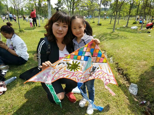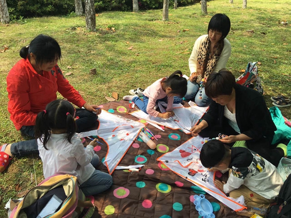 在公园的草坪上,每位家长秉承着“环保出行”的理念,每一家都带了垫子和垃圾袋。午餐结束后,每个孩子拿到一个空白风筝开始绘制。孩子们用自己稚嫩的双手一笔一划描绘出自己心目中最漂亮的风筝。看着自己的风筝飞上了天空,成就感油然而生。