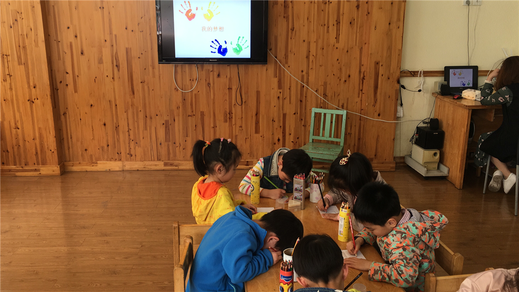 在该活动中,教师先是通过讲故事的方式导入到活动主题,然后让幼儿理解故事中蕴含的道理,并请幼儿以小组为单位进行讨论——“我的梦想”。幼儿们因为故事铺垫,所以他们有很多话想说。有的幼儿说以后长大想当宇航员,有的说以后长大想当歌手,还有的说以后长大想当画家……幼儿们的梦想层出不穷、丰富多彩。最后教师让幼儿们通过绘画的形式把他们的梦想表达出来,幼儿们在绘画过程中十分认真,还为画面做了相应的装饰。