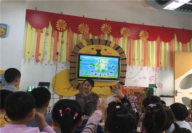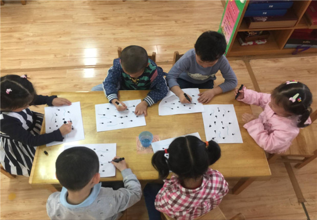 活动中,孩子们先倾听了《小蝌蚪找妈妈》的故事,通过生动有趣的故事对小蝌蚪有了一定的了解;再通过图片和视频,边看边听老师讲解,对小蝌蚪生长过程中身体的变化有了更加深入和全面的了解;接着孩子们分组近距离观察小蝌蚪,通过亲眼看看,亲手摸摸后,他们对小蝌蚪更加喜爱了;最后,大家通过手指点画的形式,点一点、画一画,不一会儿一只只虎头虎脑的小蝌蚪跃然纸上,再为小蝌蚪添画上眼睛、尾巴还有水草,“我的小蝌蚪头很大”“我们的小蝌蚪在做游戏呢”……