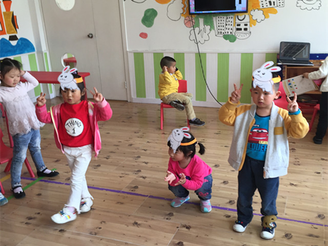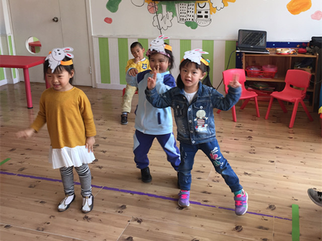 本周,我们三之三金梅幼儿园的小班的小朋友开展了一节生动有趣的音乐游戏——《小兔和狼》,为了创设场景来和孩子们一起玩游戏,活动前我们精心准备了一些小兔子和大灰狼的头饰,来激发孩子们的活动兴趣。活动开始了······小朋友早已在心中选好了自己扮演的角色,一个个争先恐后的想当小白兔。在欣赏音乐时,老师引导孩子们分辨小兔和狼的不用音乐形象,小朋友们自编自演地一下子就融入了,一会儿欢快的,一会儿激动的,像是进入到了动物世界里,今天有兔子妈妈、兔子宝宝们和大灰狼玩游戏啦!女孩子们扮演的小兔子,男孩子们扮演大灰狼,兔妈妈带着宝宝们蹦蹦跳跳的来草地上玩游戏啦,就在兔妈妈和宝宝们玩得最开心的时候大灰狼来啦,兔妈妈带着自己的宝贝们赶紧跑到树林里躲起来了,可恶的大灰狼只有溜溜的回家了,最后一只只可爱的小兔子又出来做游戏啦!