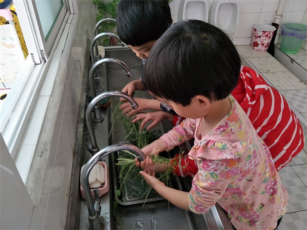 豆苗生长的很快,几个星期就非常长了,这么多的豆苗该怎么办呢?让小朋友品尝自己每天照顾的豆苗是不是更有意义呢?于是我们就决定开展“翻滚吧!小豆苗”活动。