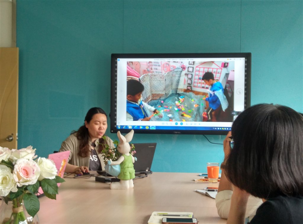 活动中,外出参观学习的老师制作了PPT分享学习成果、老师们认真聆听对主题墙饰、特色墙饰、家园联系栏等环境设计的讲解,相互交流探讨,深刻领悟“孩子是环境的主人”的教育理念。参与环境的创设,可以让孩子们在参与的过程中感受活动乐趣,使主题墙和班级特色布置更富有新意,充分发挥环境教育价值,实现环境与孩子的“对话”。
