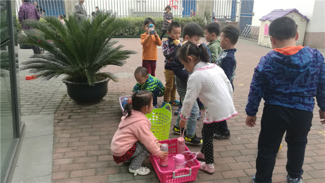 于是,在调整作息时间之际,我园大胆地将喝水环节与游戏时间融合,幼儿根据自身情况自由选择饮水时间。但我们也坦诚地承认,并不是每个孩子都能做到主动拿起水杯喝水,因为游戏的魅力有时远比饮水魅力大,尤其是对于小班幼儿而言,他们往往只能专注于一件事情。