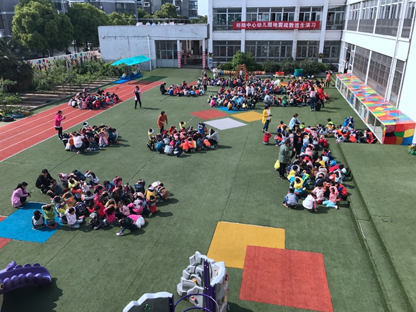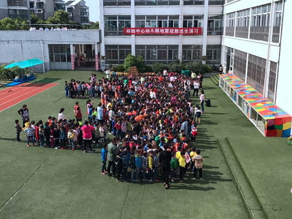 郑幼:郑陆中心幼儿园防震演习 普及师生防震减灾知识