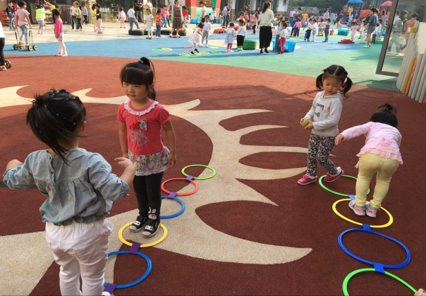 在老师的带领下,孩子们享受着阳光的照耀,呼吸着新鲜的空气,快乐的一天就这样在运动中开始了。老师充分利用各种器械和自制玩具,组织孩子们开展热身健体活动,如:跳绳、拍球、跳圈、车轮滚滚等等,孩子们有的拍、有的跳、有的钻,玩得不亦乐乎。在红幼,丰富多彩的晨间活动成为一道亮丽的风景线。孩子们玩得开心,家长也特别高兴,看到自己的宝宝那么勇敢、自信,脸上露出了满意的笑容。