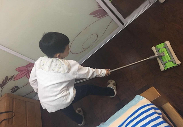 “在劳动节里,小朋友们可以干些什么呢?”孩子们热烈讨论,想到了为教室、幼儿园的卫生而劳动,为爸爸妈妈做一些力所能及的家务事:扫地、拖地、洗碗、刷鞋……看,我们干的多认真!