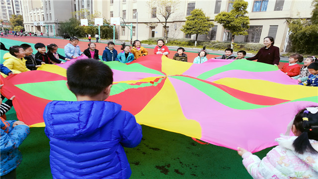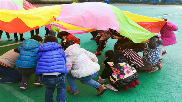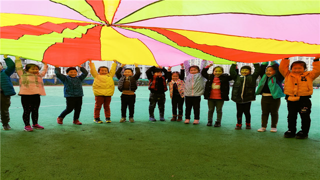 玩转彩虹伞活动,不仅提升了孩子的运动体能,锻炼幼儿的手指和手臂力量,增强抓握力,在培养幼儿肌肉锻炼的同时,还让孩子体验到运动的快乐,增强老师间,幼儿与幼儿之间的情感,感受到成功的喜悦。(余君芬)