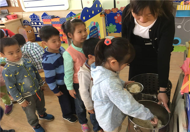 刚开始进行自主用餐活动时,幼儿没有打饭的经验,很多幼儿连饭勺都拿不好,“反手打饭”的现象很多,需要老师一点一点引导才能慢慢地变得顺手。其次幼儿自主盛饭菜会花费很长的时间。最后,由于幼儿的不熟练,常常把饭菜弄在桌子上和地上。