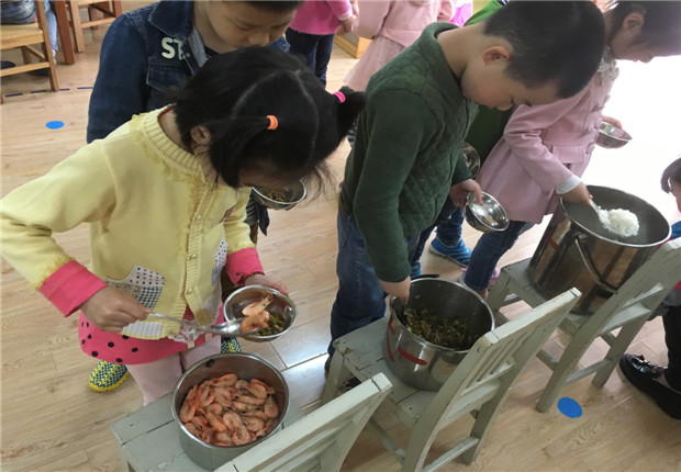 午餐是幼儿园一日生活中的重要环节,关系到幼儿的营养与健康,同时,良好的饮食习惯和进餐能力,对幼儿健康成长起着重要的作用。围绕省课程游戏化及支架中提出的“尝试一餐两点由儿童自主完成,让儿童尝试自我服务、自我管理。”的要求,近期,红梅幼儿园中大班孩子率先尝试自主取食,快乐进餐的乐趣。