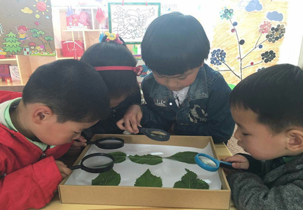 走进蚕宝宝的世界,孩子们惊喜不已,相应的系列活动也拉开了帷幕:观察并记录蚕宝宝的变化、我是小小饲养员-----孩子们每天都很早来园,先给蚕宝宝喂桑叶、然后清理蚕盒、悉心喂养。孩子们看到有的蚕宝宝很调皮,和他们“捉迷藏”,躲在大的桑叶下面悄悄地猛吃。如果放了几片嫩嫩的新鲜桑叶,蚕宝宝们会一起“冲”上去,贪婪地抢着吃,有的则斯斯文文的好像在说:“别抢,别抢,大家都有!”。在孩子们的照料下,蚕宝宝越长越大,有一天,孩子们观察到有的蚕宝宝不吃桑叶了,以为它们生病了,正在着急,园长老师用稻草给蚕宝宝盖了座房子,哦,原来蚕已经开始吐丝结茧了。蚕宝宝吐出的丝还能做出蚕丝衣服、蚕丝被、蚕丝面膜呢!小小的蚕宝宝能做出这么大的贡献,孩子们都拍手给蚕宝宝点赞!