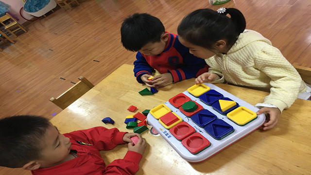 瞧!游戏开始啦!孩子们都找到了自己喜欢的益智玩具,和好朋友一起分享。