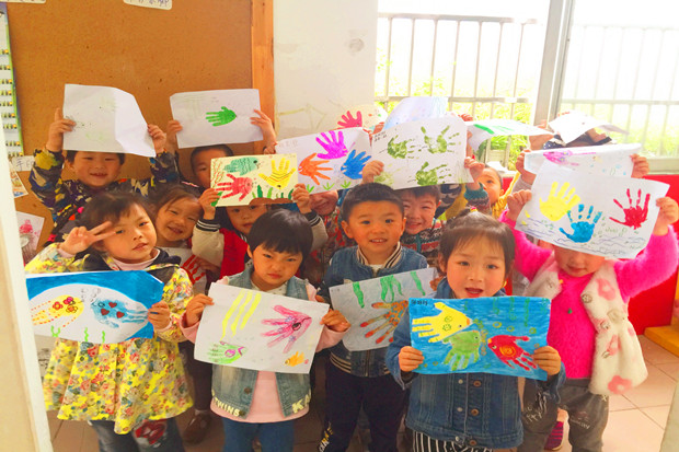 茶山幼:体验手印热带鱼 收获艺术成功感