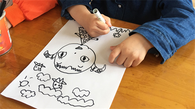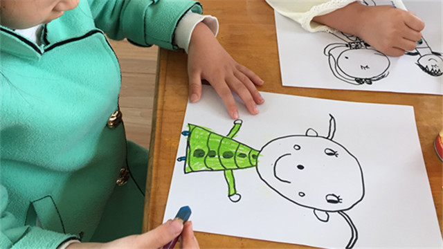 我们的莹莹,她说自己是公主,因为她喜欢穿公主裙,这时候,小组的同伴也附和道,“是的,王莹小朋友有好多公主裙,我也觉得她像公主那样漂亮。”通过大家的交流,接下来第二个环节就是用手绘画,来描述一下自己,画一幅自画像。