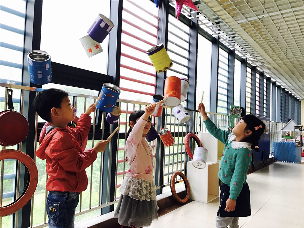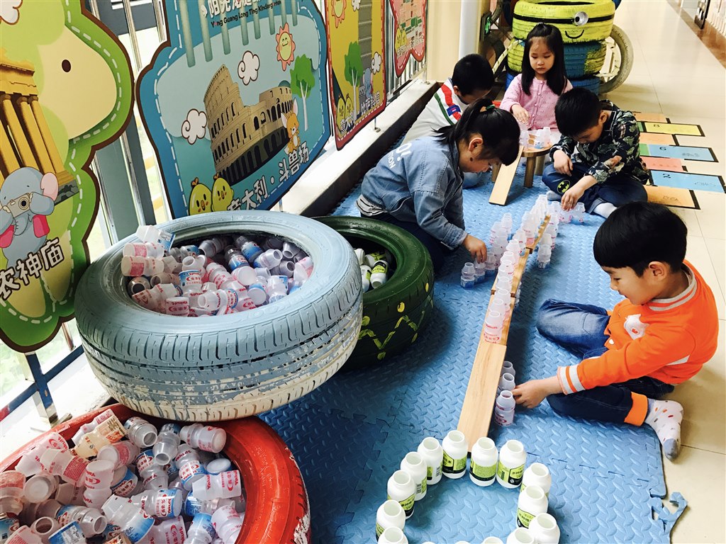 我们不光为幼儿园的美丽环境做贡献,还会开动脑筋变废为宝哦!你看,我们将洗衣液瓶变成了美丽的花盆,布置在植物角;奶粉桶成了五彩打击乐区,敲敲打打真快乐!小小的塑料瓶积少成多,一条宽阔的马路诞生啦!