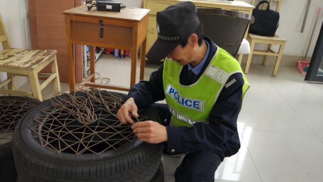 幼儿园楼梯台阶保护带翘起来了,徐师傅立即找来工具箱将每个边边缝缝全部粘合到位;教室里的水龙头突然漏水了,孩子睡的床不牢固了,他便拿起工具箱“该出手时就出手”;最近徐师傅在门卫每天抽空为孩子们的晨间新玩具在巧手制作。