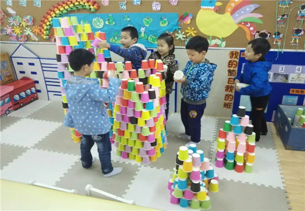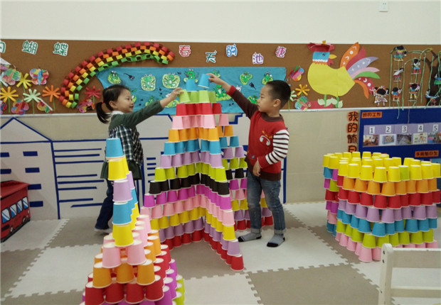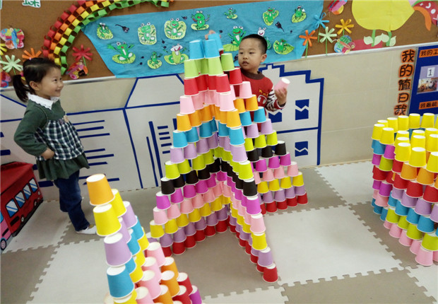 叠高、拼搭、造型。于是,建构拼搭活动便活跃了起来。孩子们的思维敏捷,在作品中我看到了许多的方法在其中,看着他们如何把杯子叠高、叠稳以及按规律摆造型的方法等等。在拼搭作品的过程中,幼儿在合作拼搭时共同想办法、共同创意,遇到问题时一起想办法解决,比如如何才能让杯子叠上去不倒,如何造型更独特,如何按想法搭的更显现。
