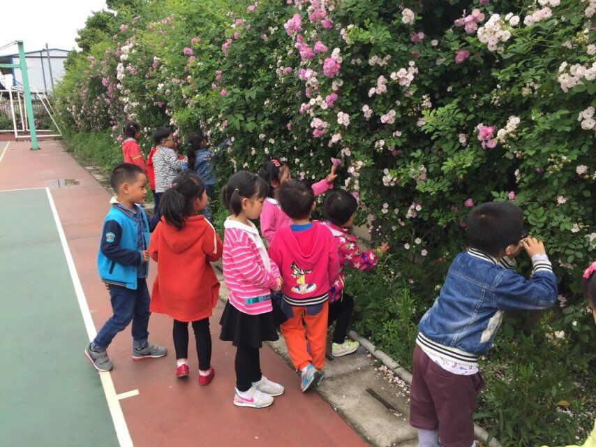 这次活动我们带领了孩子来到操场四周,感知蔷薇花的绽放,触摸蔷薇花的美丽,活动的开展让幼儿养成从小爱护花草的习惯,培养了幼儿关心周围事物,感知美好的快乐。