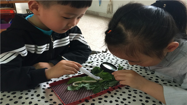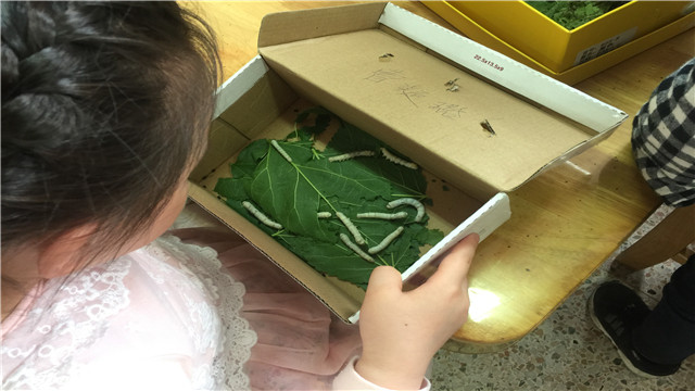 此刻正是养蚕的季节,孩子们正开展着养蚕活动。