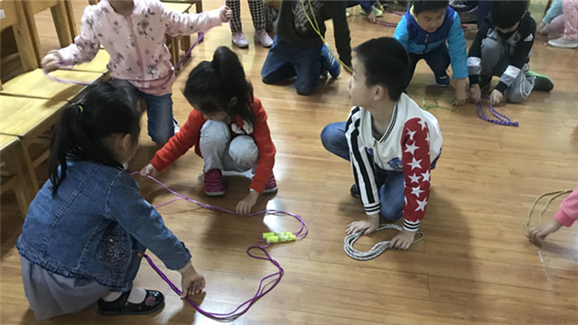 近期,我班的孩子学习了一本有趣的绘本《小猪变形记》,整个故事幽默有趣,特别是小猪的变形引起了孩子们浓厚的兴趣,为了满足孩子们的兴趣爱好,我们特意构思了绘本拓展游戏《超级变变变》,通过游戏给予孩子充分想象、创造和自由表现的空间,在游戏的情境中,激发幼儿自己或与同伴合作,用简单的道具——比如绳子或身体动作表现物体形象的情趣,发展幼儿的合作、协调、及解决问题的能力。