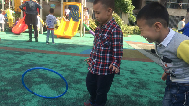 户外活动时间到了,孩子们纷纷跑向了彩圈摆放的区域。“我要红色的,我拿蓝色的。”“我喜欢跳圈圈。”孩子们选择好自己喜欢的彩圈,有的在安全的场地上滚,有的拿着圈套住对方玩起了木头人的游戏,有的幼儿和好朋友一起放低圈圈小心的钻,还有的幼儿把圈摆成了奇妙的八卦阵准备跳呢,还有的当成小汽车,被同伴带着跑真好玩。小小的彩圈带给了孩子们无穷的快乐,孩子们的笑脸在阳光下显得更加可爱活泼。