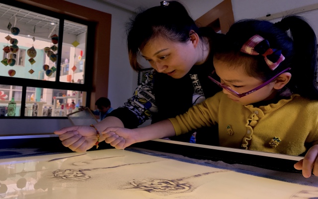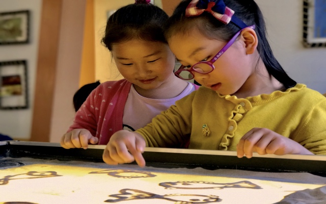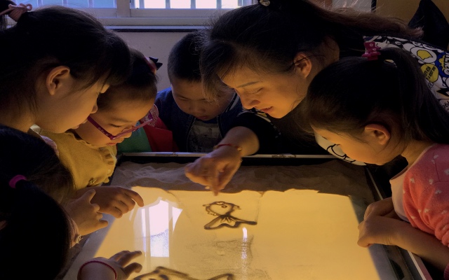 沙画是我园新的艺术课程,其材质是最自然的沙粒,因此沙画正被日益众多的人们所喜欢。尤其是孩子,孩子爱玩沙子是天性,通过沙画活动,能较好地锻炼幼儿手部肌肉的灵活性、促进手部肌肉的正常发展。近日,天宁区实验幼儿园沙画坊又聚集了一群小朋友,开始新鲜有趣的沙画创作活动。