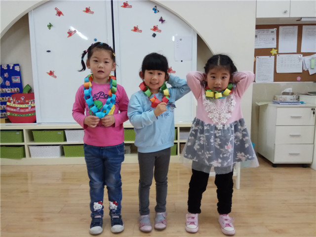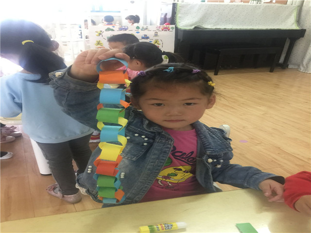 幼儿还学唱《世上只有妈妈好》, 主动对妈妈说“妈妈我爱你,妈妈你辛苦”等爱的鼓励的话。孩子们亲手制作项链送给自己的妈妈当礼物,用泥工做出七彩蛋糕,用雪花片拼出一个个美丽的花环,表达对母亲纯真的爱。