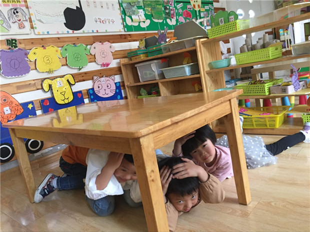 为确保演练成功有效地开展,幼儿园前期就制定了安全、科学的演练方案和应急预案,组织全园师幼开展了防震减灾知识教育,观看防灾减灾题材视频、练习疏散避震动作。下午3时,随着防空警报的响起,防震疏散演练正式开始,各班老师立即告知幼儿“地震来了,不要慌”,并指挥幼儿紧急避险(指导幼儿迅速抱头、闭眼,躲在桌下,尽量蜷曲身体,降低身体重心,并尽可能保护头部)。各班老师组织幼儿按照安全疏通路线迅速有序地通过安全出口,安全迅速地集合到指定位置,清点人数,汇报人员情况。整个演练过程急而不乱,稳定有序,达到了预期的目标。相信如果真的地震了,我园全体教工和幼儿也能像今天这样不慌不乱,积极自救。