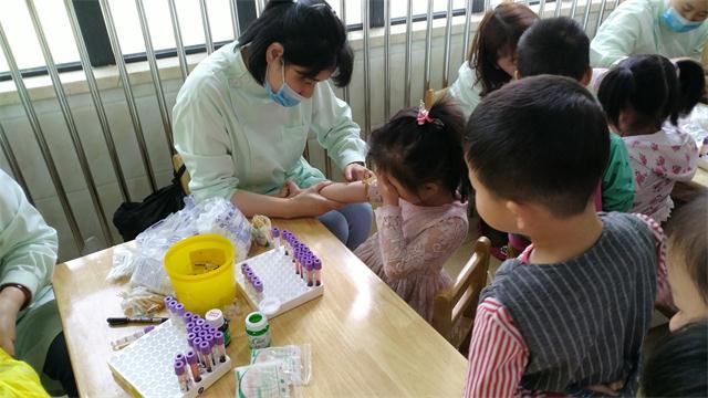 我园全体教师一同协助医生为小朋友们进行口腔、内科、血色素等项目的检查。由于各班老师们事先做了心理引导,加上医生们热情的微笑服务使孩子们消除了对“白大褂”恐惧的心理,整个过程井然有序。