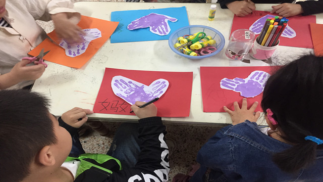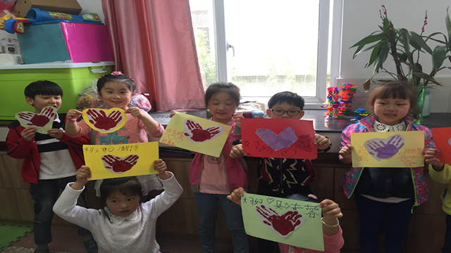 孩子通过用小手粘上彩色的颜料,在纸上印出一个个可爱的手印爱心,来表达自己对妈妈浓浓的爱意。小朋友一笔一画的学写“妈妈”是用自己的稚嫩的笔迹来表达自己对妈妈的感恩。