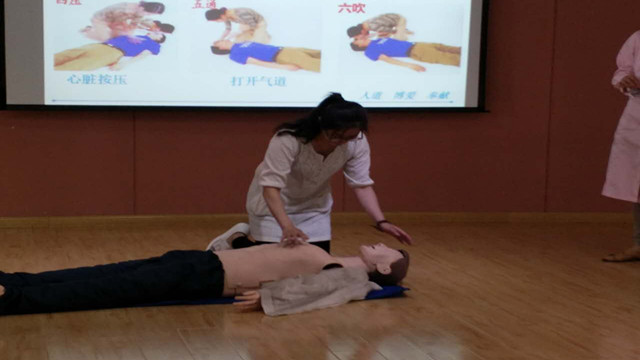 讲座以PPT教学和实践操作相结合的方式展开,总结了现代救护的精髓,强调心肺复苏的几个步骤:一拍,二呼,三调整,四压,五通,六吹。详细为家长和老师讲解如何调整体位、打开气道、判断呼吸、人工呼吸、胸外心脏按压等急救法。讲座中,学员们也上台进行了实地演练,感受了整个急救过程。本次讲座系统地讲解心肺的心理结构和复苏法的操作要领,并以互动的方式邀请家长进行了练习操作,使家长们轻松掌握心肺复苏法的操作技能。