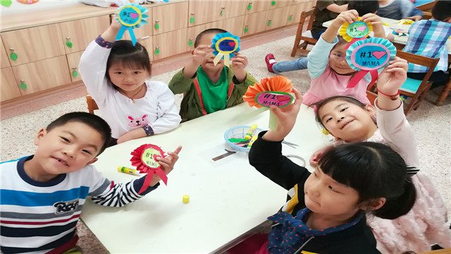 每个孩子用稚嫩的小手,把一张一张的彩纸变成了一个个漂亮的徽章。在制作过程中,孩子们细心、努力表达着对妈妈深深的爱,因为他们明白自己亲手做的礼物送给妈妈,才是最珍贵的。他们用单纯的方式,送给妈妈一份温馨的礼物,祝福妈妈节日快乐。一张张小小的爱心徽章都满满承载了孩子们对母亲的爱,表达对妈妈的感激之情。