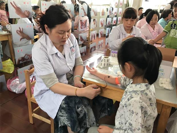 为更好的了解孩子们生长发育状况,保障孩子们身体健康,根据计划,近日,郑陆镇卫生院的医生们来园为孩子们进行了一年一度的“六一健康体检”。体检项目包括身高、体重、血常规、心肺听诊、口腔检查等。