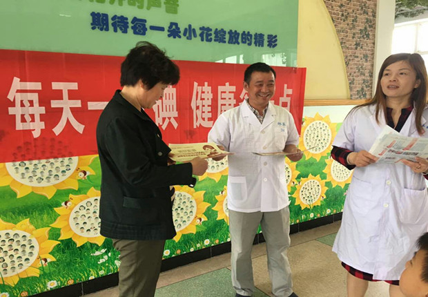 在5.15宣传日到来之前,我园邀请了镇卫生院相关专家为孩子们检查甲状腺是否肿大,并给家长们讲解防治知识,发放宣传手册。各