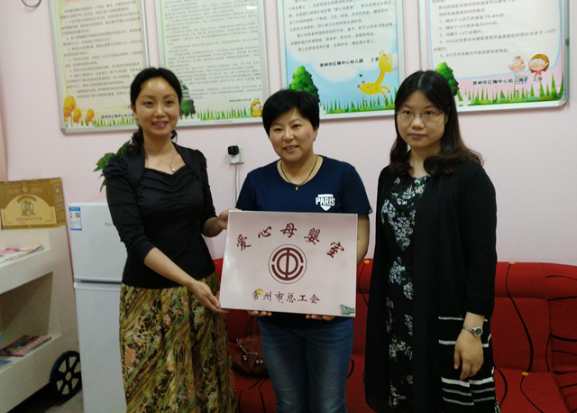 5月16日下午,常州市总工会领导在天宁区工会、红梅街道工会等工作人员的陪同下赴常州市红梅中心幼儿园验收“爱心母婴室”创建工作。