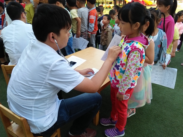 为了解幼儿生长发育状况,为幼儿的疾病预防提供有效依据,为幼儿的健康保驾护航,在“六一”儿童节来临之际,郑陆卫生院的医生们来到了郑陆中心幼儿园,在5月17-18日,为孩子们进行全面的身体检查。