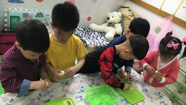近日,红梅中心幼儿园的小班小朋友举行了一场别趣一格的“剥蛋”比赛。