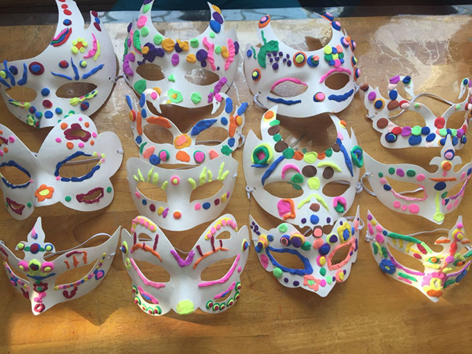 小朋友的创造力是无限的,戴上自己装饰的、独一无二的面具,真的很有成就感。(包)