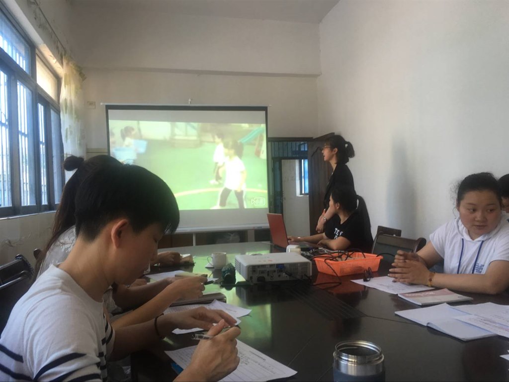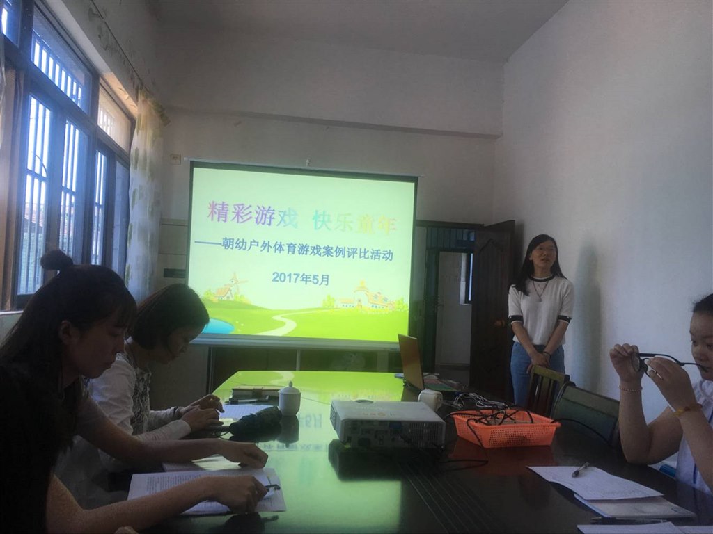 近日,为了进一步提高幼儿户外活动质量,推进老师们互相之间的学习交流,朝阳幼儿园开展了“户外体育游戏案例”的微视频评比交流。评比活动分两个流程,第一流程各班老师结合前期本班制作的微视频进行体育游戏案例的现场讲解,第二流程各班老师根据观摩情况说各班亮点和建议,最后,园长进行总结。