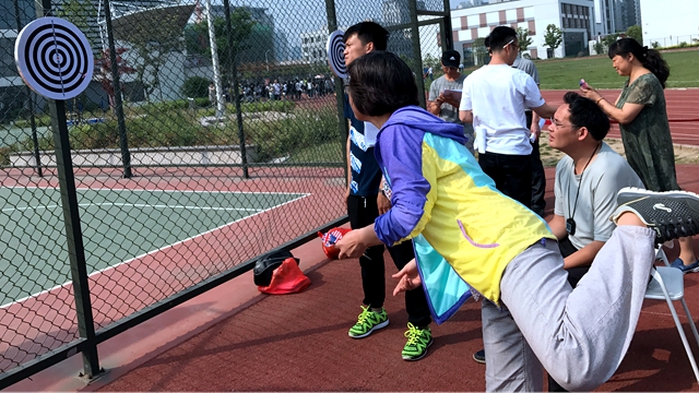 为了能更好地增强教师的体质、增进教师之间的交流,丰富广大教师的校园生活,2017年5月21日上午,新城逸境幼全体教师参加了2017天宁区教工春季趣味运动会。这次活动由天宁区教育工会联合会组织,地点在二十四中天宁分校。本次运动会设立团体项目七项。分初高中、小学、幼教三大组,设置了“托盘接力(迎面)”、“小猪快跑(绕标)”、“抱球接力(迎面)”、“飞镖”、“搬砖行动(迎面)”、“春播秋收(迎面)”等大众性趣味活动项目,严格制定了比赛章程和评分细则,让每一个教师都有机会参与运动、展现自我、发挥特长。比赛开始后,操场上一片欢呼声。新城逸境幼全体教师都积极配合参与,在结束一周的紧张工作后,全身心放松地投入运动游戏当中,释放出无拘无束的活力,幸福的笑容洋溢在每个人的脸庞。本届教师趣味运动会在一片愉悦、欢乐、和谐的气氛中圆满结束。