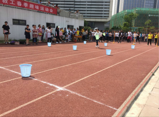 本次运动会设置许多趣味竞赛项目:有春播秋收、小猪快跑、托盘接力等,整个比赛场,精彩迭起,老师们情绪高涨,雕幼的年轻教师们在“托盘接力”比赛中,稳扎稳打,在保证水瓶不倒的前提下加快步伐,稳中求胜;雕幼·采菱园的教师则参与了“春播秋收”的比赛,教师们不紧不慢,互相鼓励、互相配合,快速跑动,迅速从筐里拿羽毛球,通过老师们的齐心协力,老师们最终在“春播秋收”比赛项目中拿到了团体第六的好成绩。