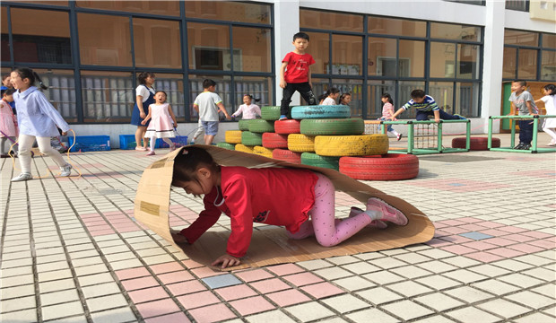 瞧,一个个快乐的身影跳跃在操场上,阳光般的笑脸绽放在天真无邪的脸庞!快乐的一天就这样在趣味的运动中开始了,孩子们时而钻、时而跳、时而跑,玩得不亦乐乎。除了传统的小型器械活动练习外,值得一提的是,一些班级尝试了轮胎活动项目,采用各种方式,例如:滚、踩、跳等方法。教师们对活动进行科学合理的组织与调控,使孩子们得到了积极有效的锻炼。这种开放式的锻炼,可以玩到更多的器具,真正做晨间锻炼的主人。
